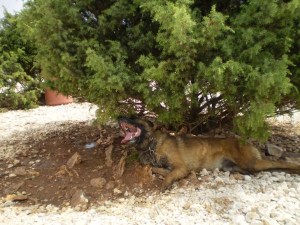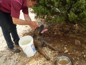 Here you can see Dinko trying to help the Alsatian which is suffering from terrible heat stroke and exhaustion.