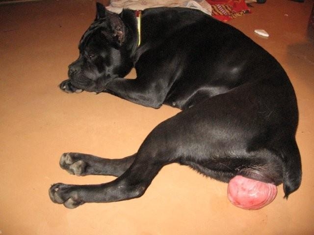 She has hyperplasia of vagina, and a cist on her eye, that is, most likely, the reason the people (her owners) didn’t want her any longer.
