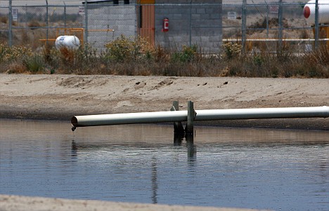 They stand on grates over a water-filled pit. Once a week, the urine and manure is flushed into the lagoon, which has a clay lining that the company says prevents any seepage.