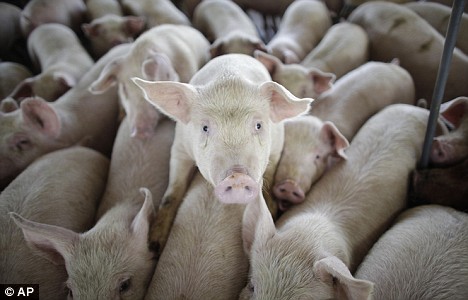 ***  Cramped: Pigs pressed up against each other in a Mexican pig farm