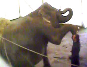 The ADI team filmed two elephant hooks being brutally used, a long metal hook was used to hit an elephant across the face during training and a smaller one which was concealed in the palm of the hand and used in the ring, unseen by the unsuspecting audience. ADI footage in slow motion shows how the hook was used on the elephants as they performed and other film shows the elephants reacting and sometimes crying out when the hook is used.