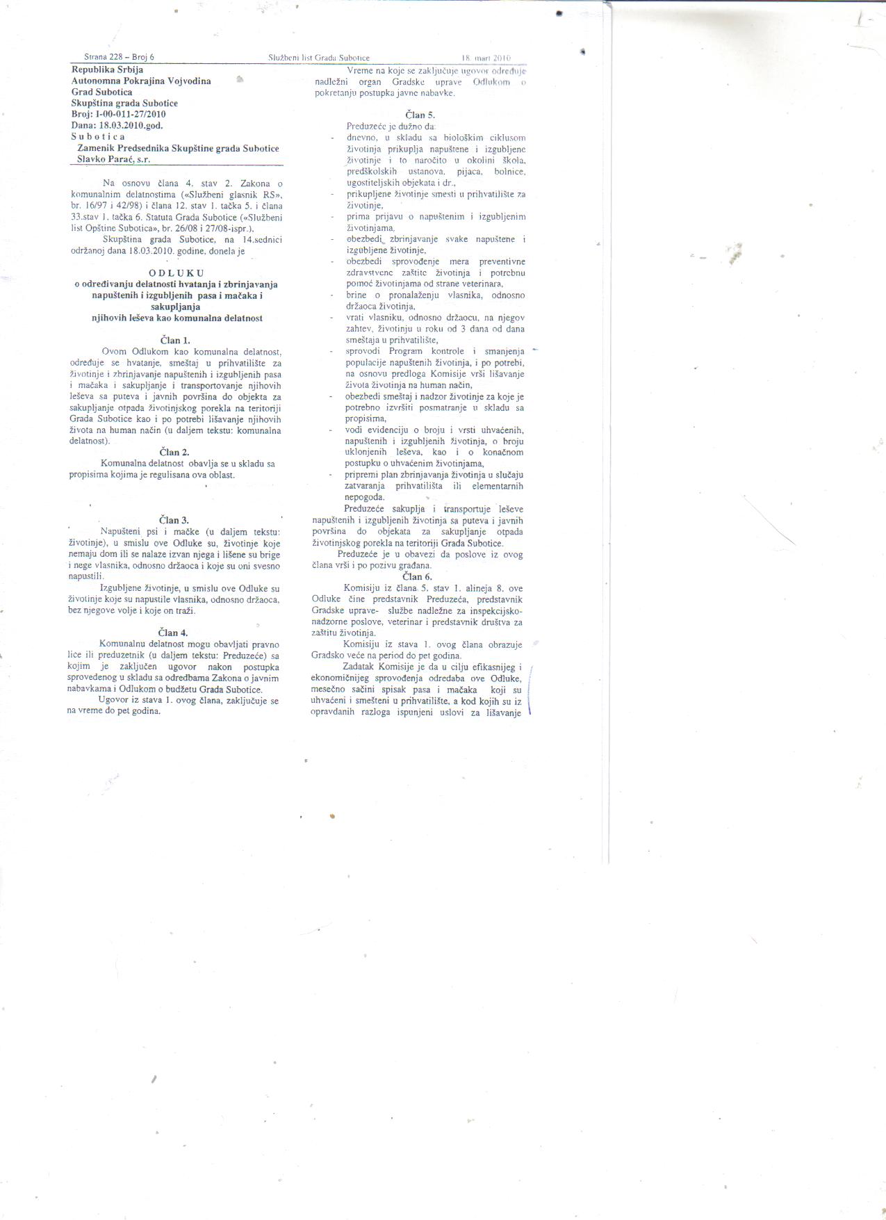 The Constitutional Court of Serbia decided that the killings of once a week back in Subotica in 2003 were unlawful. The Subotica authorities decided in 2008 that they could still kill animals more than once a month. Again the Constitutional Court of Serbia decided that these killings were unlawful.