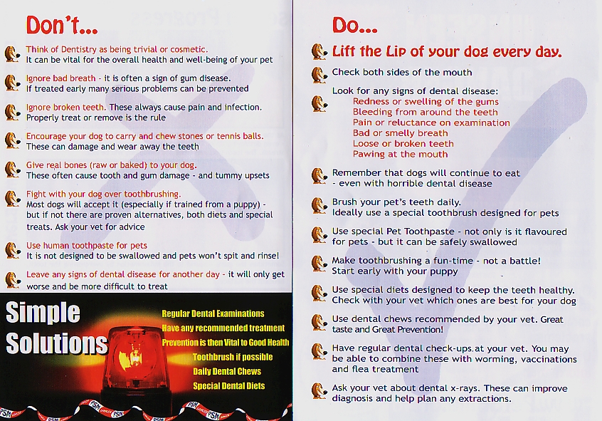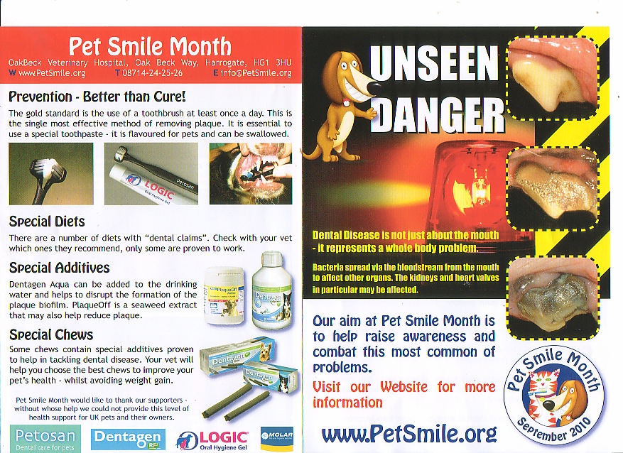 The following is a direct copy of the leaflet provided to Uk pet owners by www.PetSmile.org