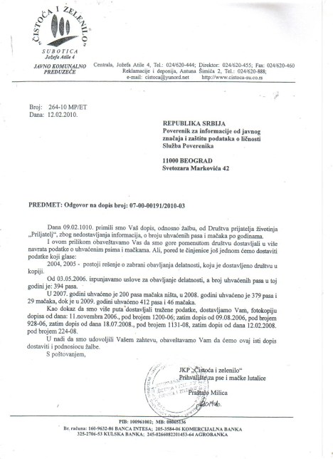 Below is a copy of the document which has been sent by Serbian campaigners to both the Subotica city authorities and also to the new President of Friend-EPAR in paper form.