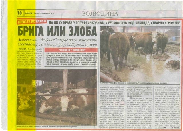 Regarding our previous posts relating to the terrible conditions that animals are being kept in at a farm in the village of Rusko selo:
