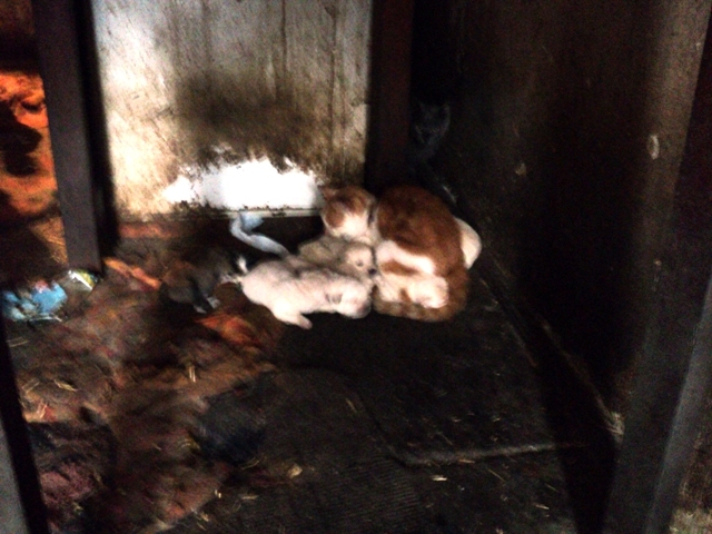Here is a link to a photo album of the dogs and attached are some images of the cats, one of which is cuddling up with some of the puppies.