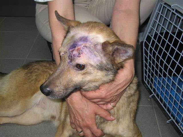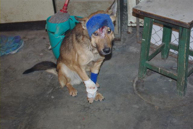 Three legged Medy`s former owner was an old lady who has recently sadly died. The local Shinters put Medy into Kragujevac city pound with the aim of killing her. A lady named Zvezdana has rescued her instead – Medy is very thin and as you can see from the pictures, her current house is far too small.