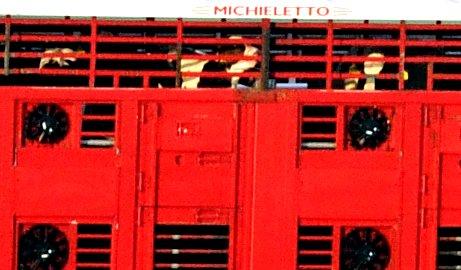 Very young Irish veal calves (ofetn around 15-20 days old) – the ‘unwanted’ males – a by product of the dairy industry – seen passing though Ramsgate port, Kent, England, which forms the ‘Land Bridge’ (between Ireland and mainland Europe). This export situation, unwanted by the citizens of Kent county, is being constantly monitored by Kent based organisation ‘KALE’ (Kent Against Live Exports), for which Mark (SAV founder) is also the EU Correspondent.