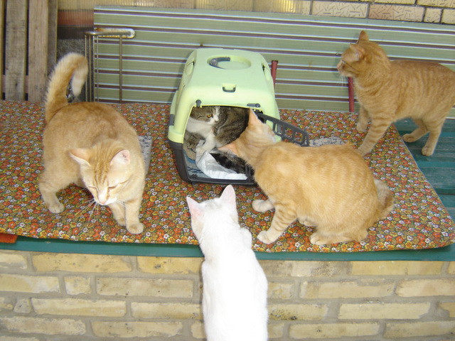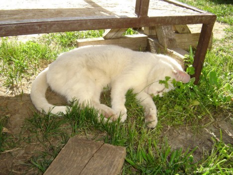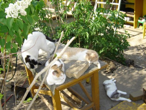 Here (above and below) are some very recent pictures that Danica has sent to us of all the cats at the shelter enjoying the better weather now.