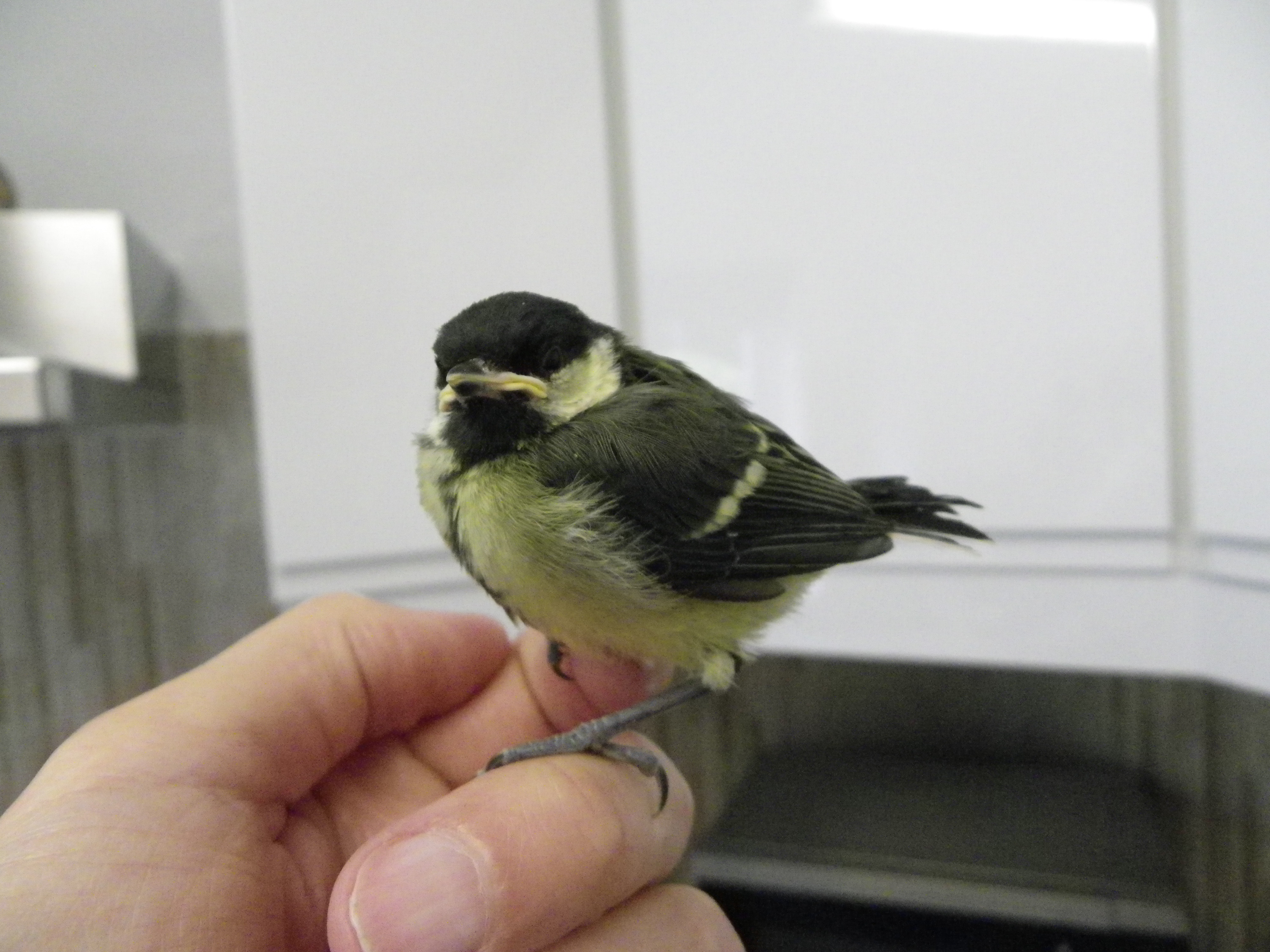 Here is a baby bird which I rescued over the weekend – still trying to get its wings and do a first flight. It was returned back into the wild within half hour when the area was secure so that mum could continue to feed and train it to fly. It is a Great Tit – identified by the black stripe running down its chest – common in Europe; but a life well worth saving !