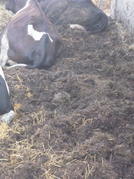 We are disturbed to discover that in 2012, conditions do not seem to have improved. Pictures from the farm show the cattle lying in their own manure. Unsurprisingly, their coats were dirty due to being forced to lie in their own excrement. Contact between their udders and faeces and urine and dirt on the teats increases the risk of infection by a range of micro-organisms including e coli. These can cause mastitis which is a risk to the health and welfare of the cattle as well as to the health of people who consume dairy products from this farm. These are also conditions in which flies are likely to breed with further risks of disease spread.