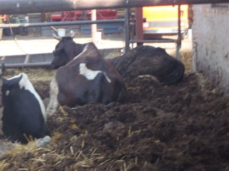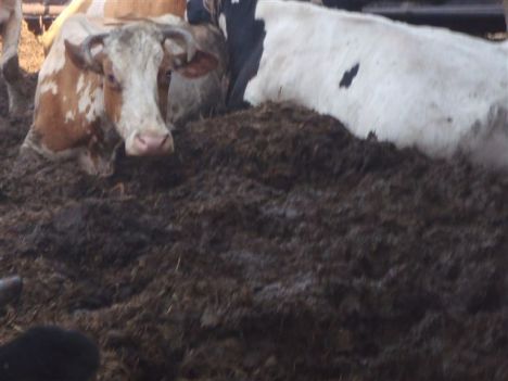We are disturbed to discover that in 2012, conditions do not seem to have improved. Pictures from the farm show the cattle lying in their own manure. Unsurprisingly, their coats were dirty due to being forced to lie in their own excrement. Contact between their udders and faeces and urine and dirt on the teats increases the risk of infection by a range of micro-organisms including e coli. These can cause mastitis which is a risk to the health and welfare of the cattle as well as to the health of people who consume dairy products from this farm. These are also conditions in which flies are likely to breed with further risks of disease spread.