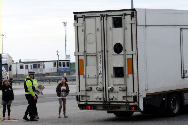 The wording of my petition is as follows and attached you will see a photos by Valerie Cameron and Bill of exactly this type of Dutch registered trailer carrying live animals out of Ramsgate port, Kent, England.:
