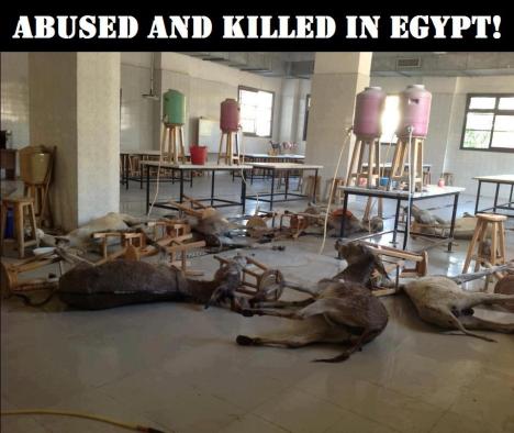 A while back students from the University of Cairo had reported that the staff of the Faculty Of Veterinary Medicine threw dogs off the third floor after experimenting on them, and that they had abused and electrocuted a little donkey to death.