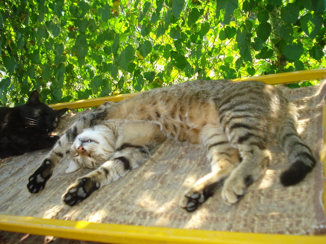 “The new roof eaves are almost finished and the only thing left is to apply a protective coating of paint and that’s it! My kitties are already seeking shade under the eaves and seem to really enjoy the benefits of roof overhangs. Roof repairs are also being brought to an end. The insulation quilting has been put in place, the roof itself is covered with roof tiles and the gutters have been placed around the roof as well.