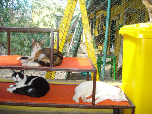 More sand, cement, gravel and outside tiles have been purchased in order to cover a new concrete path with paving tiles to make it more durable. The entire house needs to be plastered and whitewash applied as well to protect the exterior walls. Nothing has been done as of yet in regard to the path that leads from the side entrance into the yard to the cats’ indoor facility. There’s just not enough money and all of these repairs have already seemed to last forever, not to mention that total costs have escalated to two times higher than first expected.