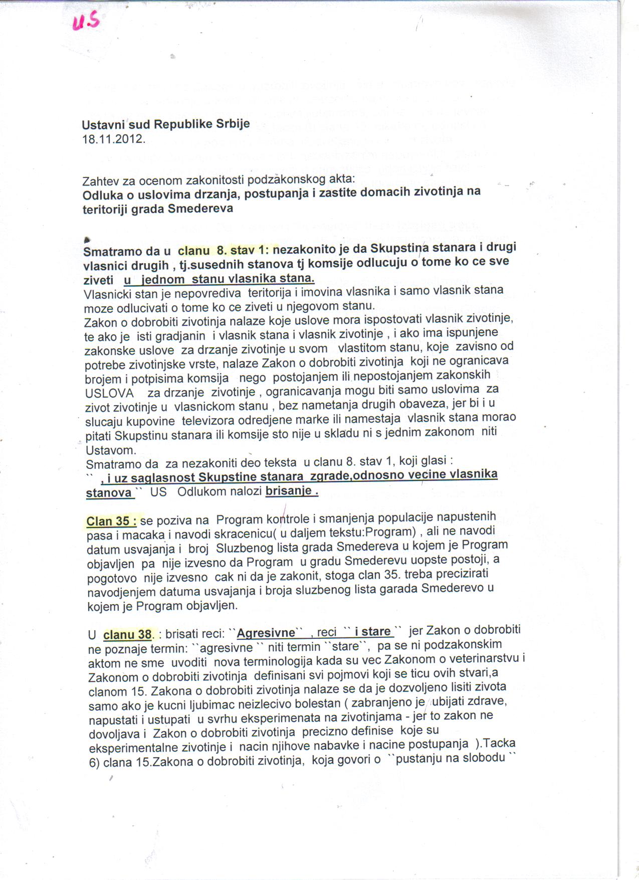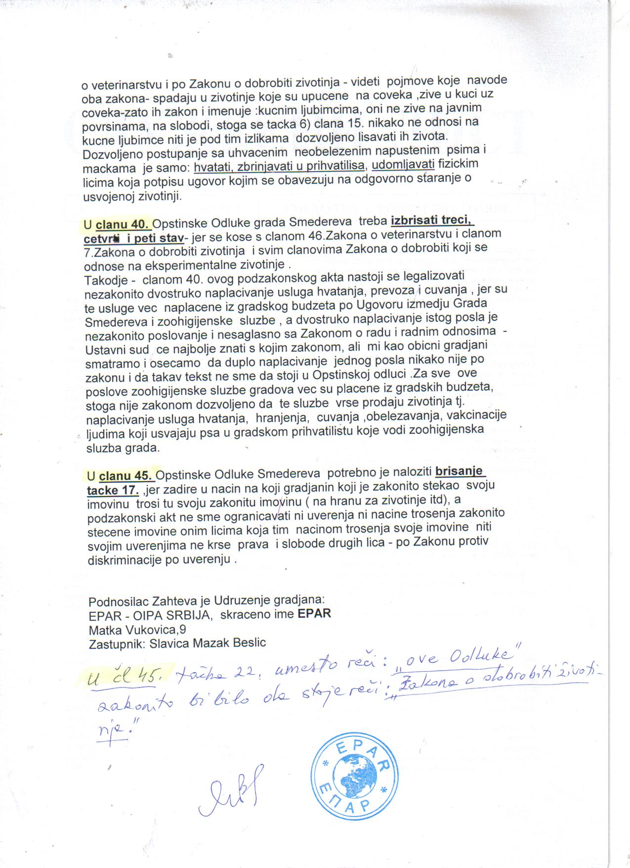 Slavica (EPAR) has just written to the Serbian Constitutional Court regarding Smederevo city. Learning from recent work and Constitutional Court approval of her wrok in Subotica city for the animals there, Slavica is hopeful of a positive result also regarding Smederevo.