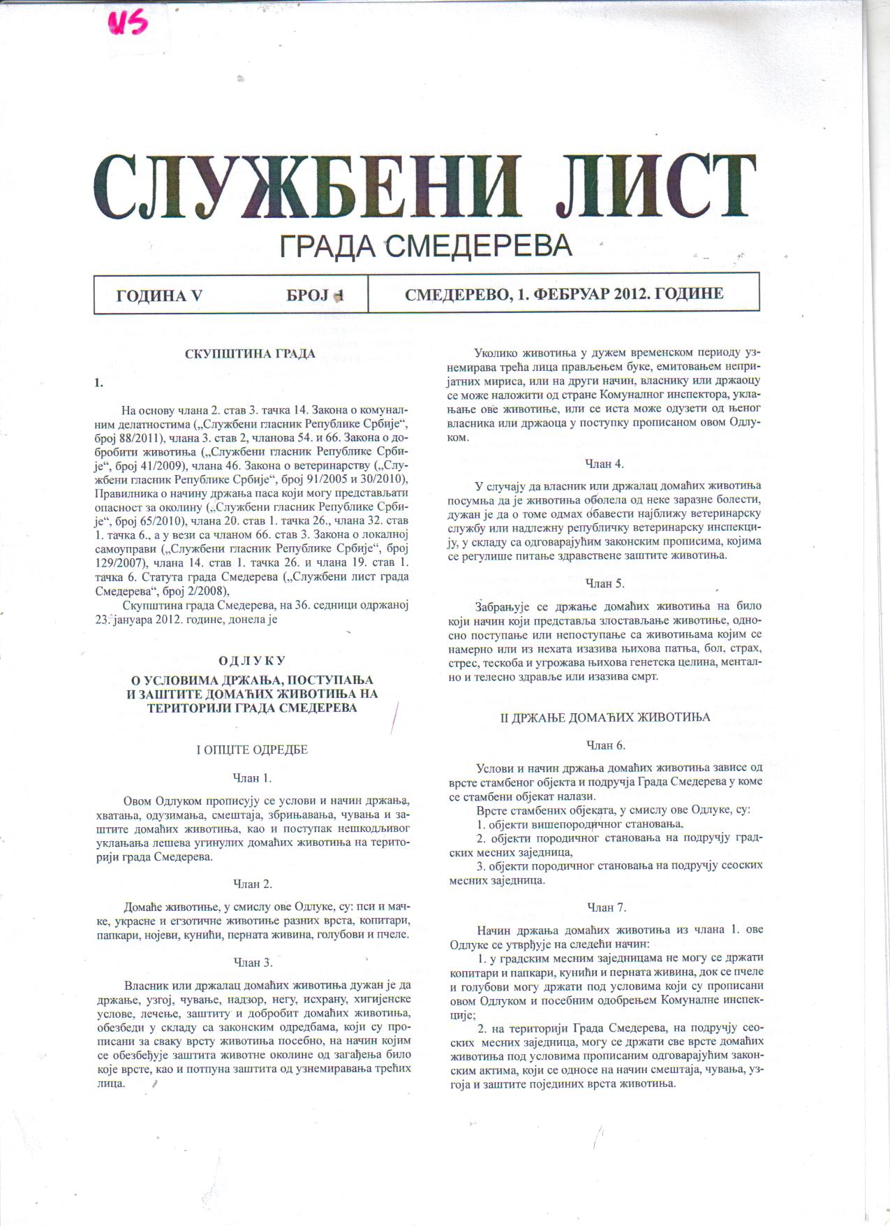 The following link is a newspaper article relating to the unlawful killing of animals by the city of Smederevo.