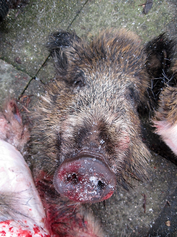 There is a large incision in the side of the neck, exposing the gland. The animal exhibits all signs of intense suffering; in his struggles, he again and again lifts his body from the board, and makes powerful attempts to get free.[18]