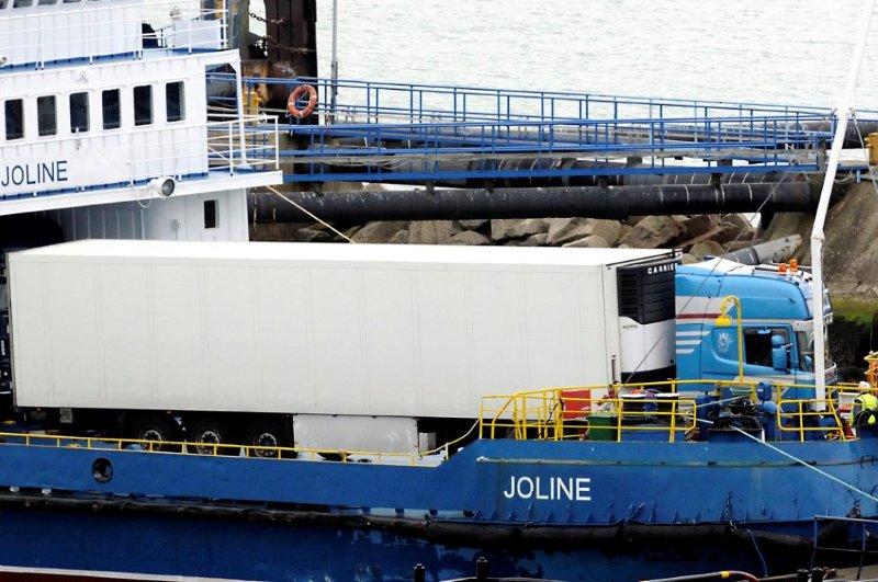 The ‘Joline’ departs Ramsgate with a typical load of animal transporters (J. Jackson KAALE)