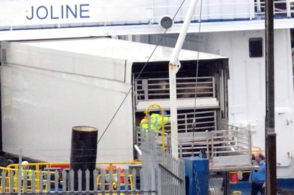 The most annoying thing about it all is that NO UK people are involved with the exports. It is run by a Dutchman named J. Onderwater and often involves calves travelling from Ireland to mainland Europe, simply using the UK as a ‘land bridge’. Onderwater operates the vessel ‘Joline’ which is a simple barge; a throwback from the Cold war days with the Soviets when it was used as a battle tank carrier. Now the ‘Joline’ carries live animal transporters from Dover port in the UK (England) to Calais in France. British people in general are outraged at this, and the want the UK government to step in and amend the 1847 Act so that UK ports can refuse the trade in live animals.