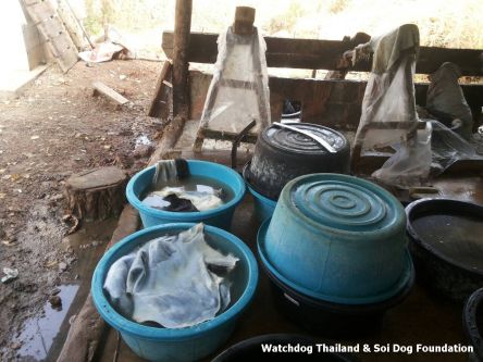 Just recently butchers in Nong Kai and Bueng Kan were arrested and their houses of death shut down. Raids have also been made on tanneries where dog skins are processed for making leather goods such as golf gloves.