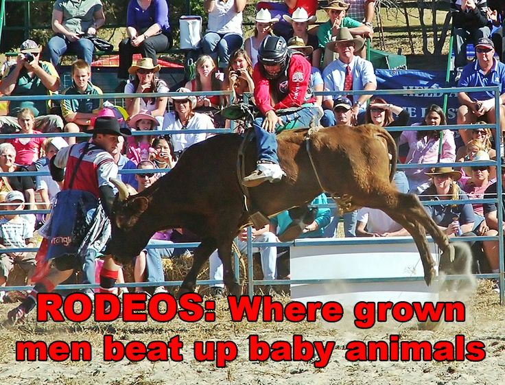Quote: “The immorality of rodeos extends to the arrogance of the riders and their attitude to the animals, and to the way the audience is demeaned by watching such a tawdry spectacle.”