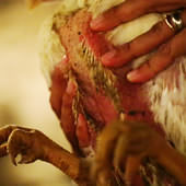 The killer then beheads the rabbits. This is not always swift – when the blade grows dull, it takes time to saw from the back of the neck to the front.