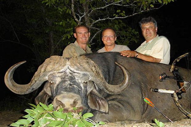 Below – Palmer with a Cape Buffalo. (Photo: Trophy Hunt America)