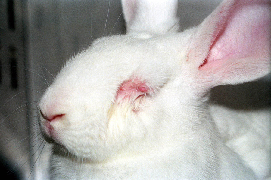 After examination by a veterinarian it was found that the problem with his eye is congenital, so now we are only cleaning and lubricating it. The upper front teeth are broken, and on his back there is an older burn that heals and looks like a cigarette burn.