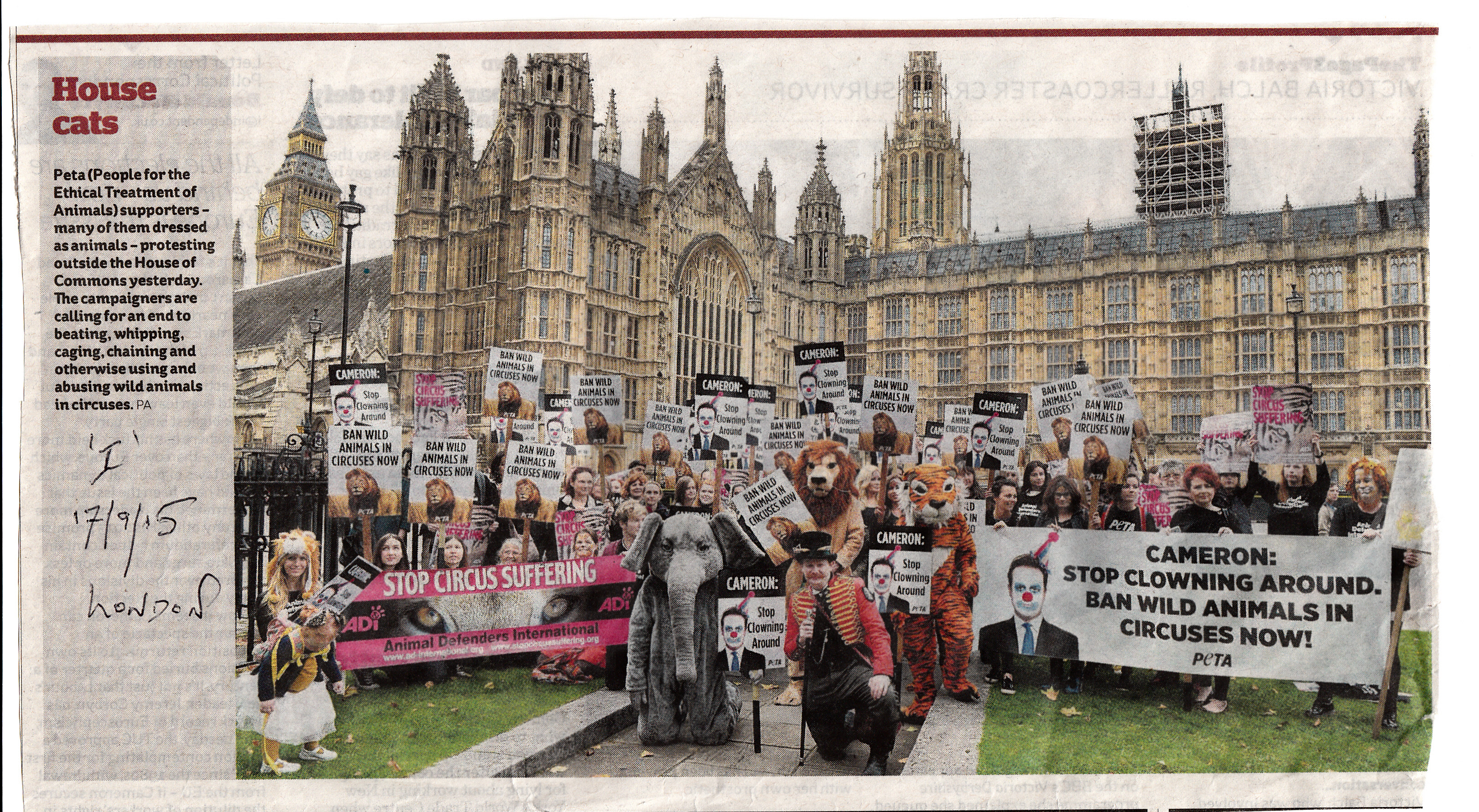 Ok, so you have yet another go at the clowns led by chief clown David Cameron MP; this is what you get – Demo, Houses of Parliament, London, 16/9/15: