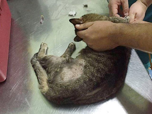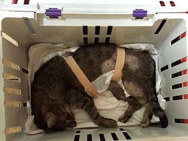 Luckily, she hasn’t tried to take off the bandages since; she is being given antibiotics and painkillers and she began to eat yesterday evening. The bad news is that the long-term prognosis for a cat with mammary tumors is guarded, as up to 65% of surgically removed tumors reoccur within a year. Most of the kitties survive less than a year after being diagnosed with this life threatening disease, although there are always some fortunate ones which are able to fully recover and never have any additional problem.