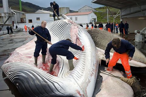 Iceland’s whale hunt is conducted in violation of the International Whaling Commission’s global ban on commercial whaling.