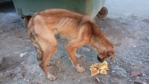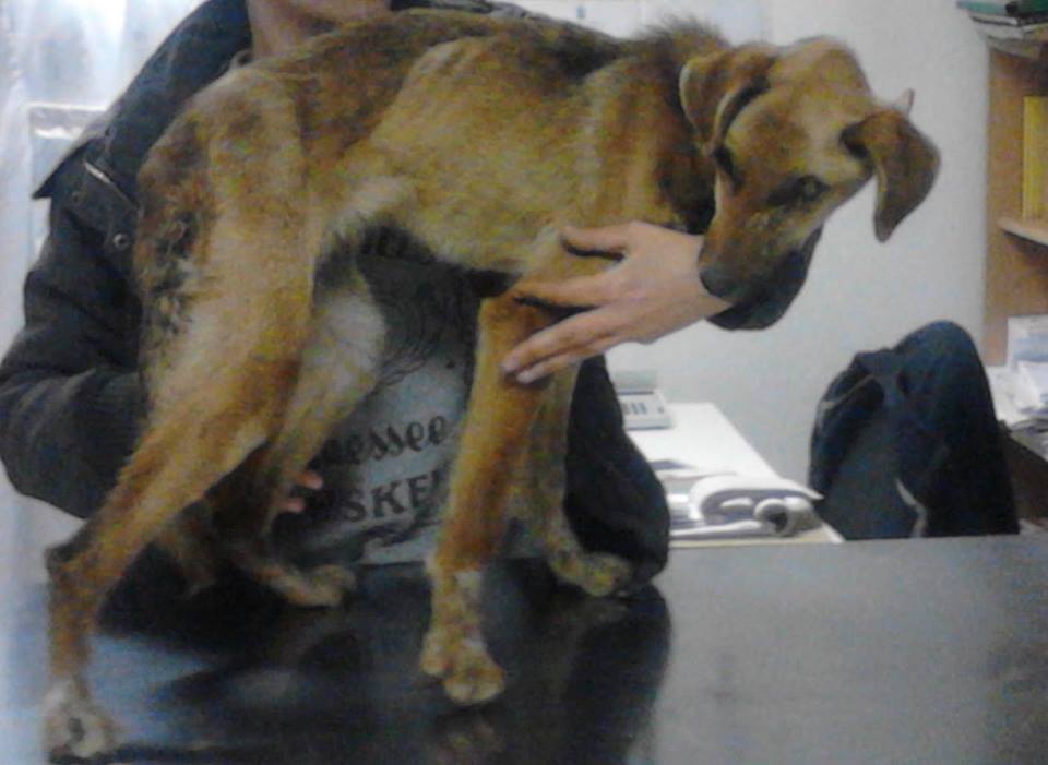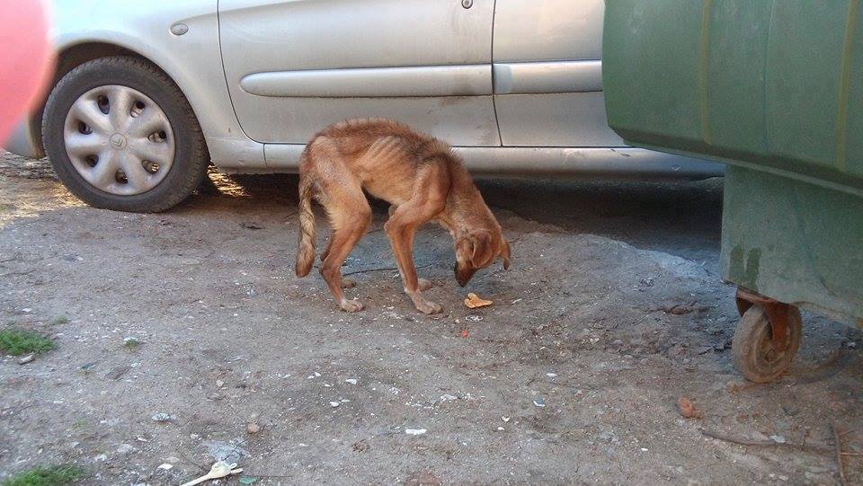 It is an older female, malnourished, living skeleton with wounds on her body and one eye that has already been affected by gangrene. Every time we touched her she moaned, barely standing on her feet, frightened and distrustful.