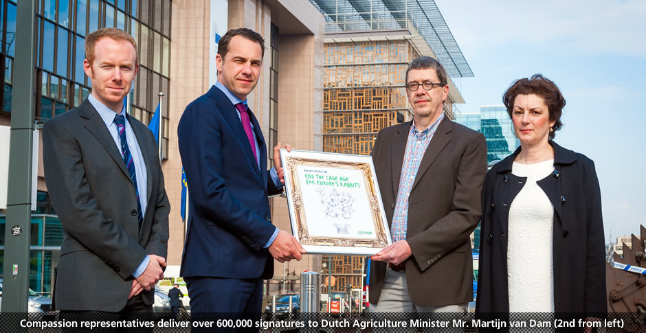 Earlier this week I was joined by an army of cartoon rabbits as I delivered Compassion’s biggest ever online petition to a meeting of Europe’s Agriculture Ministers in Brussels.