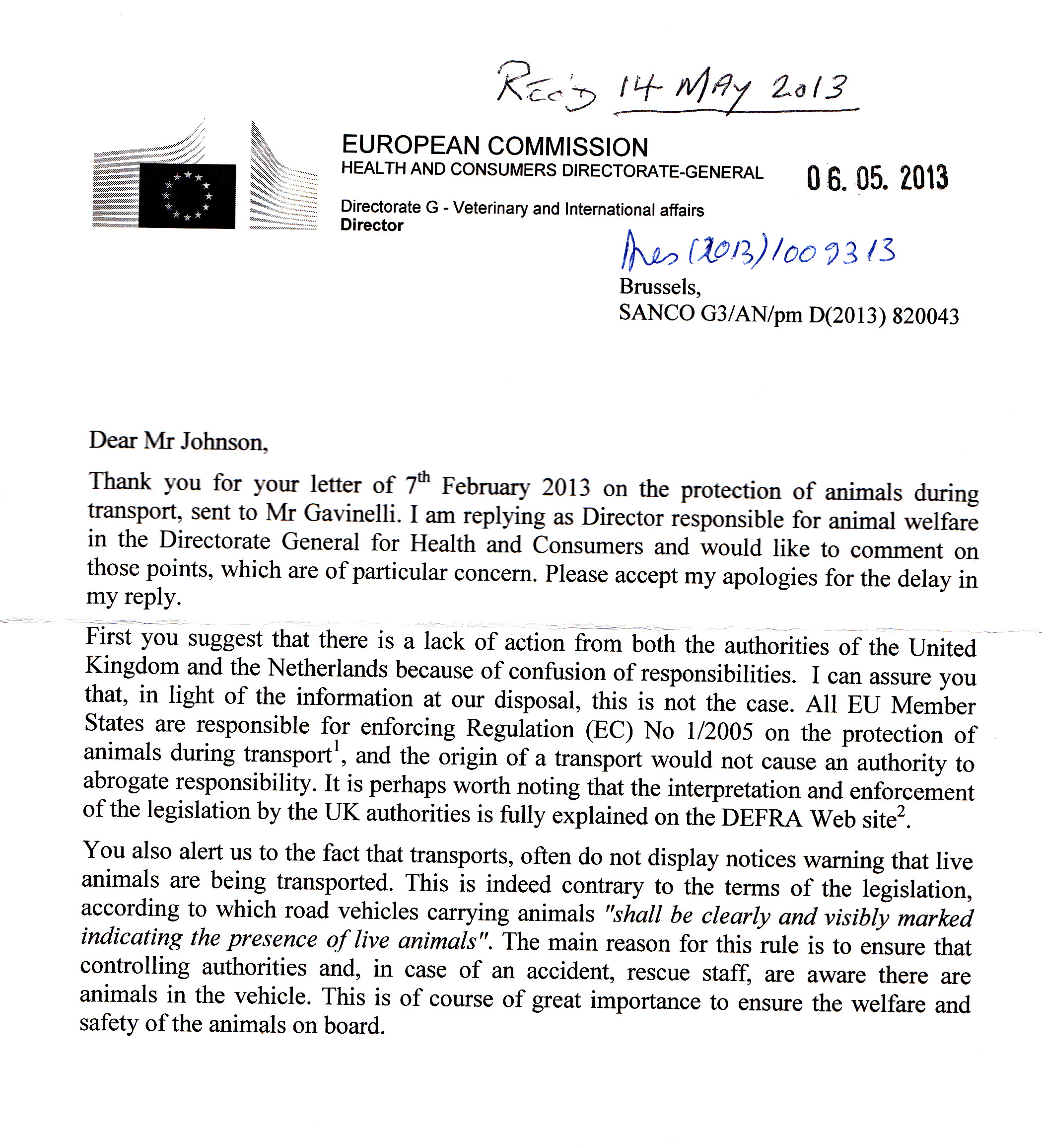 So, we have to ask exactly what Mr Van Goethem and his ‘team’ are actually doing for the welfare of animals in transport from EU member states. In our opinion, very little at all; maybe even nothing. Not particularly good for someone who in his letter of May 2013 to Mark claims to be the ‘Director responsible for animal welfare in the DG for Health and Consumers’ (at the EU).