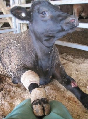 A young bull that became stuck in a railing and injured its legs while struggling to free itself in 2011. Photo: Courtesy of Lynn Simpson