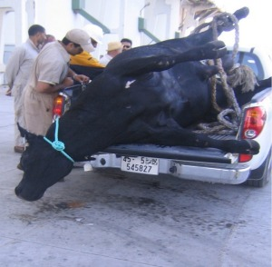 After being unloaded into a truck in Libya, this bull escaped into the water, but died after being hit by a container ship. Photo: Courtesy of Lynn Simpson