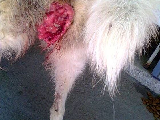 This is Azra, the beautiful girl whose ‘owner’ obviously does not care too much about her because he allowed her to come to this situation, and the situation is following: the carcinoma of the vagina whose type we still do not know because it requires a departure to vet clinic in Belgrade, after the suggestions of the veterinarians in Bor where Azra lives, and the pathohistology has to be done.