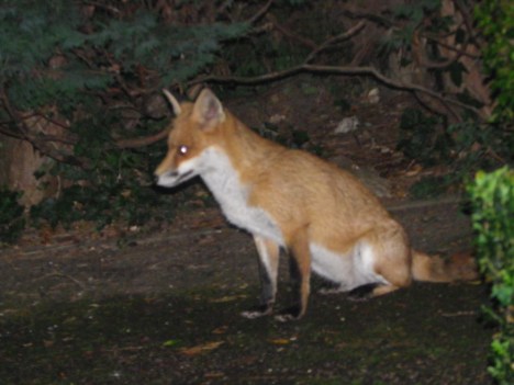 One of the resident foxes (normally about 6 each night) who visit the front garden each evening and who are rewarded with some dog food, biscuits, cake and dough nuts full of Raspberry jam – they love anything sweet. Cake and dough nuts with jam inside are favourites. Free from the hunt – to live out their lives naturally.