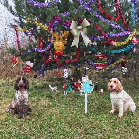 Dogs enjoy their Christmas at Jeskyns Country Park, Kent, England.