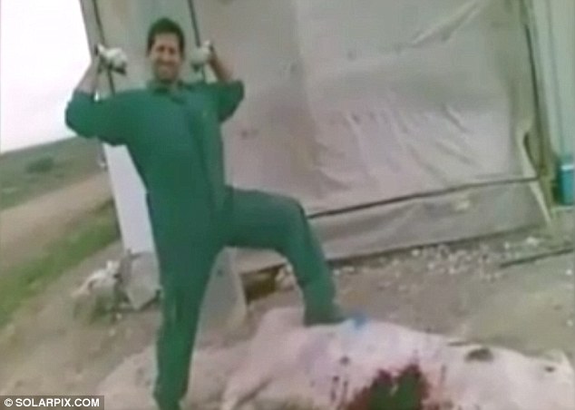 uterus with a knife whilst she’s still conscious, then pulling of piglets