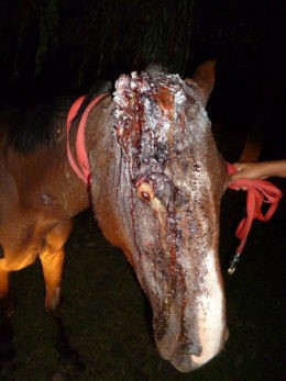 On a recent rescue mission, we found Tessa.She was trying desperately to pull an overloadedcart, she had no horse shoes and was being whipped.Mark, if you could have seen her, head droopingexhausted, emaciated, frightened and starving.We rescued Tessa, now she is in a horse sanctuarywhere she will live happily for the rest of her life. |