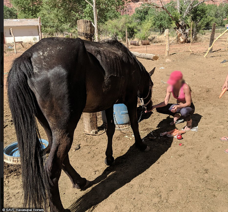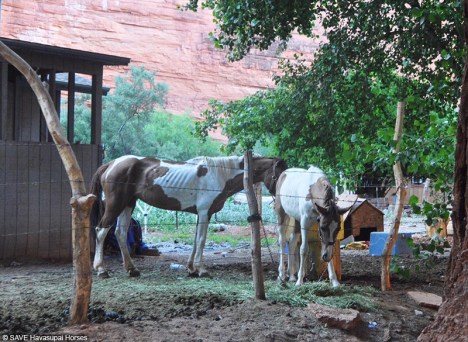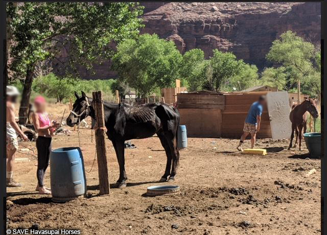An eyewitness recently took photos of emaciated horses who are used to carry heavy tourist gear in Havasu Canyon, an offshoot of the Grand Canyon. The horses are in such bad condition that their ribs protrude. The eyewitness also saw exhausted horses struggling under the weight of overloaded packs.