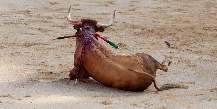 Every year, thousands of bulls endure a bloody death in bullrings across Spain. These deaths are slow and painful: men on horseback and on foot drive lances and barbed sticks into bulls’ backs before the tormented animals are stabbed with a sword or dagger.