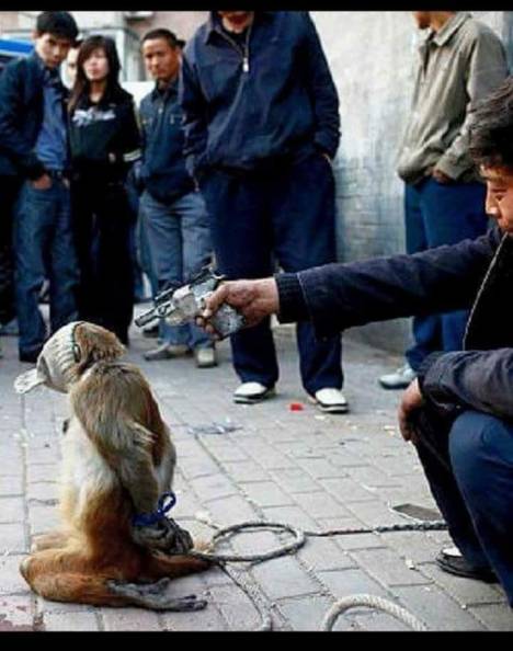 This is what the real death candidate in the picture, the monkey, wanted: just live!