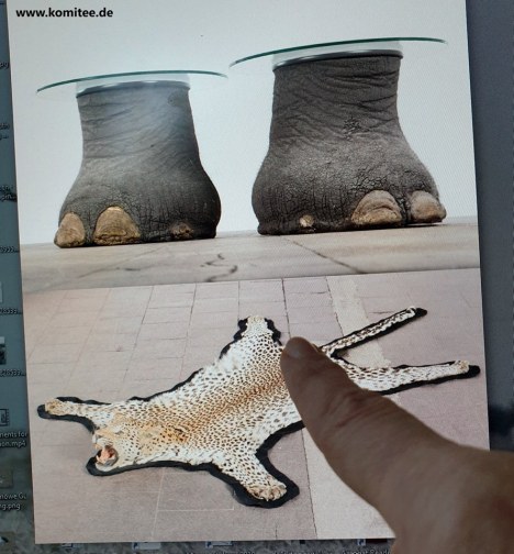 Perverse and illegal: tables of elephant feet and leopard skin confiscated in Cologne, Germany!!