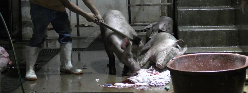 The current animal welfare laws that protect dogs and cats do not prescribe any regulations for the animals in the breeding, fattening and slaughterhouses of the food industry. If somebody treated a dog or a cat like workers in the farms visited, such as pigs, cows, sheep, chickens or goats, these people would have to face imprisonment.