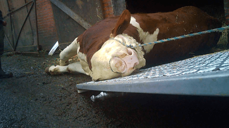 On the farms, the old dairy cows, who could no longer walk, were dragged by cable winch into the vans – the animals had to suffer incredible pain here.