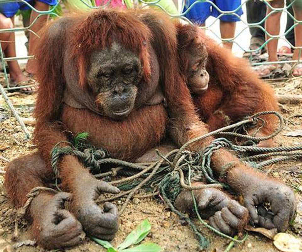Not until March did a small baby orangutan die of hunger after the mother was shot with 74 bullets.